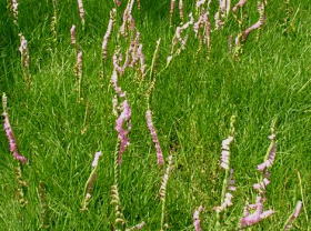ねじ花は、友達の家の庭に咲いたものです。 ねじ花がかわいそうだといって、 毎年、6月いっぱいは芝を刈らずに、 ねじ花を踏まないように草取りをしているようです。 先日、刈り取る前日に写しました。 昔はどこにでも生えていたように思いますが……。(Mさん) 2006/07/24 ネジバナ(別名 モジズリ) の群落(M.T.さん提供) rollover |