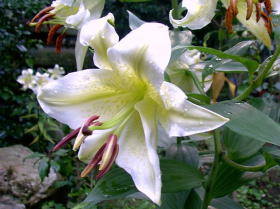 夕風に山百合の皆動くこと(虚子)山百合にねむれる馬や靄の中 (蛇笏) 起ち上る風の百合あり草の中(松本たかし) 2006/07/31 ヤマユリ(園芸種)(M.T.さん提供) rollover |