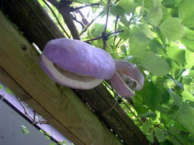 一夜さに棚で口あく木通かな(一茶) 通草食む烏の口の赤さかな(小山白楢) 母追うて走る子供の手に通草(橋本鶏二) あけびの実軽しつぶてとして重し(金子兜太) 2006/10/23 アケビ(通草、木通)の実(M.T.さん提供) rollover |