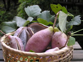 鳥飛んでそこに通草のありにけり(高浜虚子) 主人より烏が知れる通草かな(前田普羅) 夕空の一角かつと通草揺れ(飯田龍太) 2007/10/15 アケビ(通草)の実(M.T.さん提供) rollover |