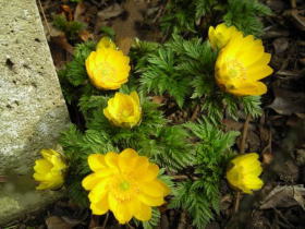 福寿草家族のごとくかたまれり(福田蓼汀) 日記まだ何も誌さず福寿草(遠藤梧逸) 2008/01/07 福寿草(別名 元日草)(M.T.さん提供) rollover |