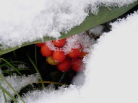 初雪の見事に降れり万年青の実(村上鬼城) 寒の雨色となりたる万年青の実(松本島春) 2008/01/21 万年青(おもと)の実 rollover |